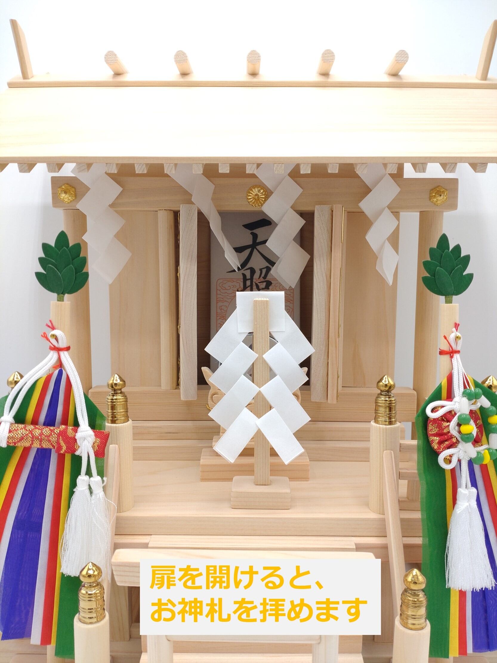 こちらは本格的な神棚で扉を開けるとお神札を拝め雰囲気が変わります。